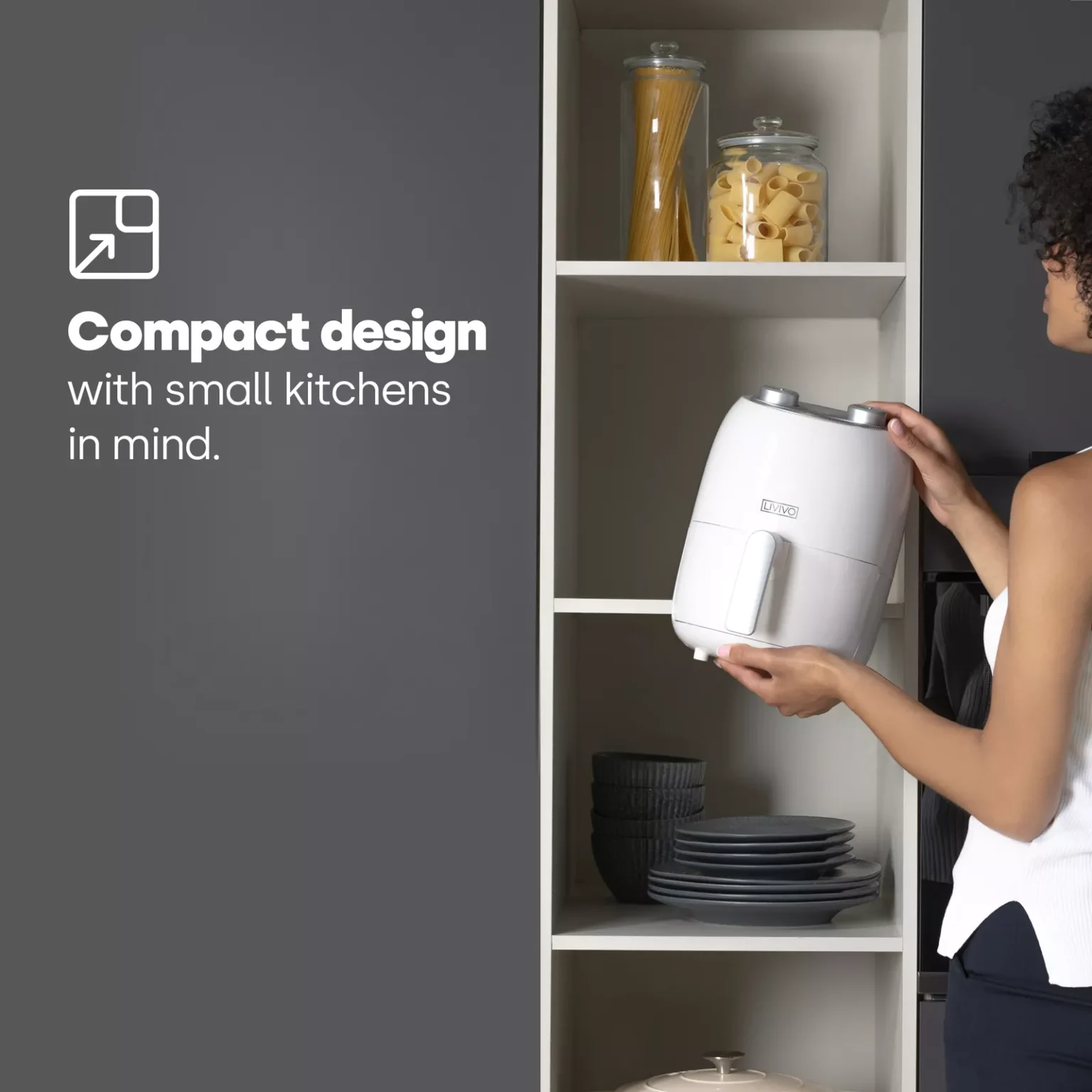 The LIVIVO air fryer is a counter-top kitchen appliance that cooks a huge range of foods by circulating hot air around the food using convection. A discreet mechanical fan helps move the hot air around the food at high speed, producing the crispy outer layer loved by all.